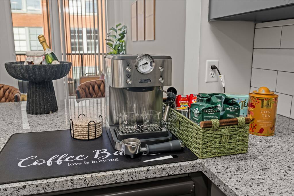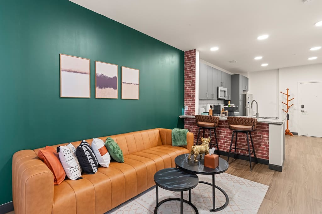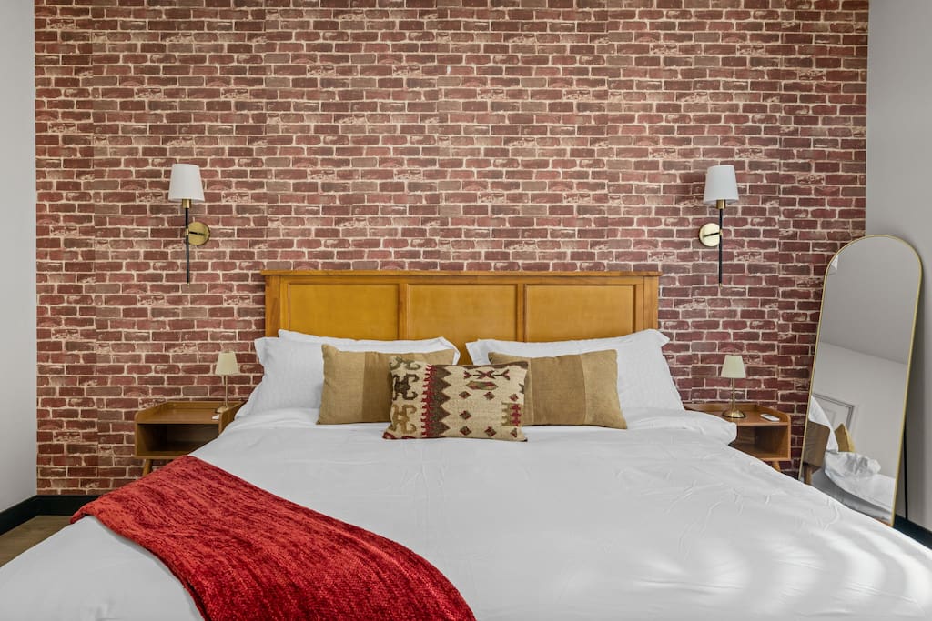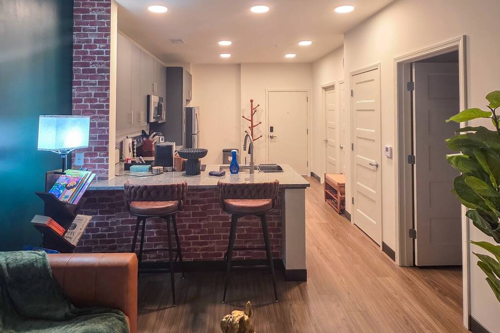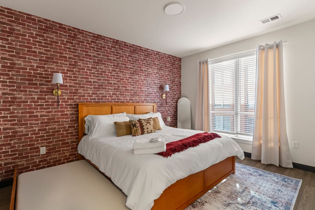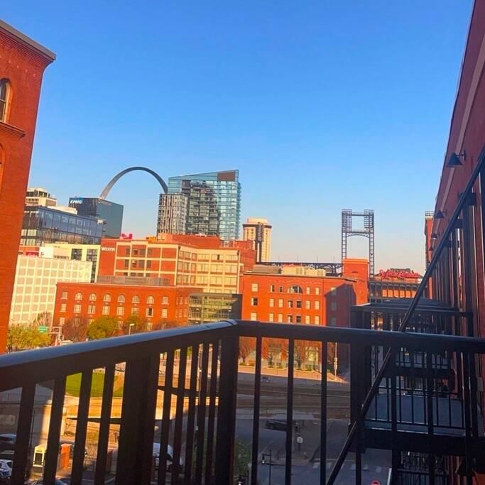The View & The Vibe Experience the pinnacle of St. Louis luxury in this bespoke designer apartment, where industrial soul meets high-end modern comfort. Step out onto your private balcony to take in a direct, framed view of the Gateway Arch—the ultimate backdrop for morning espresso or evening cocktails. Inside, the space features authentic exposed red brick, soaring ceilings, and a striking emerald green feature wall. Relax in the light-filled living area featuring a 55-inch HDTV with Roku and high-speed WiFi. Sleeping Arrangements: Real Beds Only This designer 1-bedroom suite is optimized for both luxury and flexibility, comfortably hosting couples, small families, or groups. Primary Suite: Features a premium King-sized bed set against an authentic industrial brick wall, offering ultimate comfort after a day of exploring St. Louis. This suite includes a spacious walk-in closet and access to a full-size bathtub for soaking away the day. The "No Sofa-Bed" Advantage: The King bed includes a real-mattress trundle pullout, providing a high-quality second sleeping option so everyone has a real bed to sleep in. Designer Comfort: Enjoy high-end linens, plush pillows, and built-in gold wall sconces for an upscale atmosphere. Family-Friendly & Modern Essentials We’ve made traveling with your "home" comforts easy. This unit is fully equipped with an in-unit washer and dryer—perfect for long stays. Traveling with little ones? We provide a Pack ‘n Play, high chair, and a selection of children’s books and toys to make your stay effortless. Pro-Level Coffee Bar & Chef’s Kitchen ☕ Why wait in line? Our kitchen is equipped with a De'Longhi Espresso Machine. Whether you want a bold double shot or a creamy latte, we provide the coffee and tea so you can enjoy barista-quality drinks in your pajamas. The gourmet kitchen is fully equipped with stainless steel appliances, granite countertops, and a social breakfast bar. Unbeatable Savings: FREE Gated Parking Skip the $30-$50/day public parking fees! Your stay includes one dedicated space inside the secure Cupples Garage. Maximum Security: A gated, professionally managed facility tucked away from the street. Climate Protection: No scraping ice or snow off your windshield! Ultimate Convenience: Located immediately adjacent to the building for easy in-and-out privileges. Walker’s Paradise (Score: 91) Forget the Uber. From our front door at 11th & Spruce, you are perfectly positioned to walk to the city's best attractions: Busch Stadium: 3-minute walk (0.2 miles) — Hear the roar of the crowd! Gateway Arch National Park: 10-minute walk for world-class views. Ballpark Village: 5-minute walk for dining and nightlife. Enterprise Center: 8-minute walk for Blues hockey and major concerts. Exclusive Building Amenities Fitness Lovers’ Paradise: 24/7 access to the largest and most elite apartment gym in Downtown St. Louis, featuring Peloton bikes, squat racks, and dumbbells up to 100 lbs. Business Elite: Private co-working booths and quiet resident workrooms. Outdoor Fun: Courtyard with gas BBQ grills, a wood-fired pizza oven, and fire pits. Downtown Vibrancy & Sports Action We are perfectly positioned in the heart of downtown, just two blocks from Busch Stadium. Because you are right in the center of the action, you’ll experience the authentic energy of the city. While this means you are steps away from the best nightlife and game-day fun, city sounds can be heard from the street side. To ensure a peaceful rest, we provide a white noise machine for your comfort.